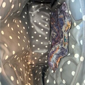 Stylish gray bag with white polka dots. Perfect for everyday use.