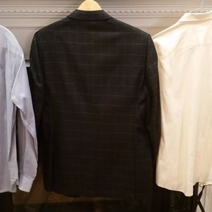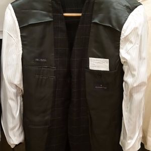 Pockets still FACTORY stitched together. Double vents, lined. Please ask to see additional pix of actual photos w measurements.