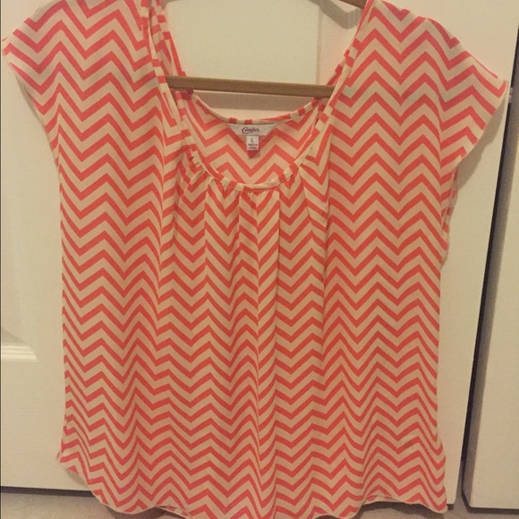 salmon/coral colored chevron top. back is slit open & ties. super cute, no flaws and very flattering top