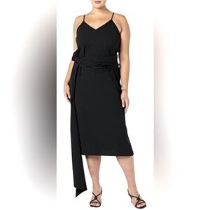 MAKING THE CUT Draped Shoulder Sash Wrapped Black Midi Dress,Women’s Sz S