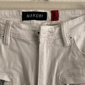 MAKOBI Men’s Distressed Style White Jeans Size 34” x 32” in excellent used condition.