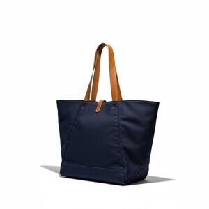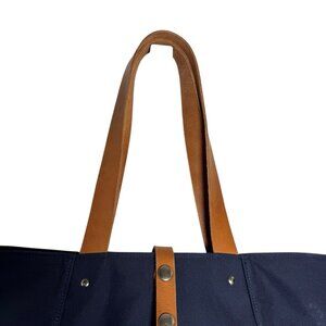 MAKR FARM TOTE Bag Navy Blue Canvas with brown leather straps XL Made in USA