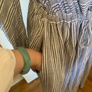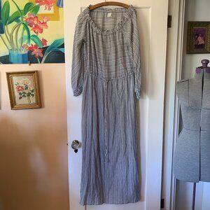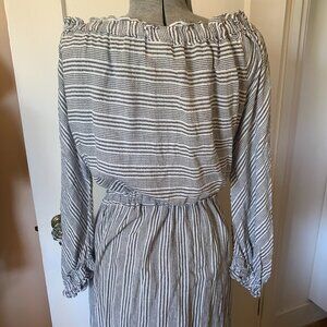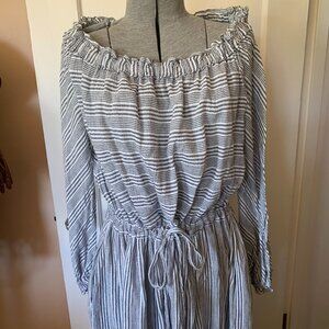MALIA MILLS Sz L Seer Sucker Strip Maxi Dress Cover Up Off-the-shoulder POCKETS
