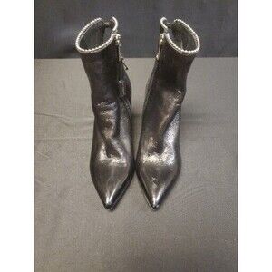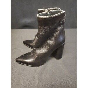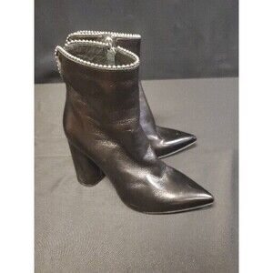 MA&LO Black Leather Studded Cuff Block Heel Bootie Boots 37 US 6.5 NWOT