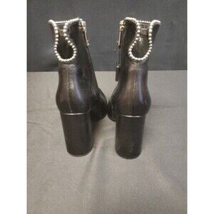 NWOT MA&LO Black Leather Studded Cuff Block Heel Bootie Boots 37 US 6.5 . Shipped with USPS Priority Mail.