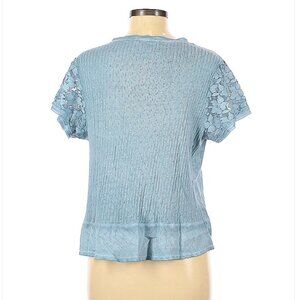 MALOKA Blue Linen Lace Short Sleeve Top Size 6