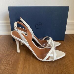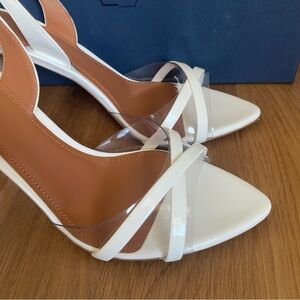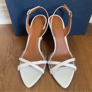 MALONE SOULIERS Jayce 90mm Leather Slingback Sandal Heels White Clear 39.5/9.5