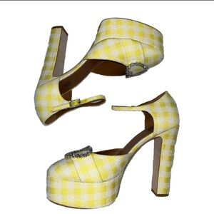 MALONE SOULIERS heels gingham plaid yellow white platform EMILY IN PARIS Camille