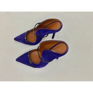Malone Souliers Suede pointed toe heels. Gorgeous!! Black leather strappy detail. Minor signs of wear as shown in the photos. Excellent in Preowned condition
