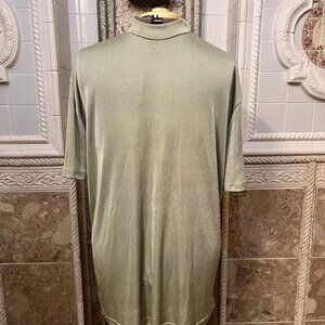 MALTOS. Size 3XL. Celery Green Poly Shiny Short Sleeve Crew Neck Pullover. B50