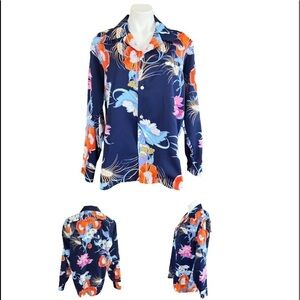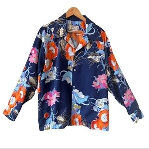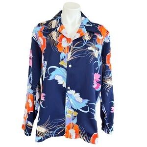 MALUNA HAWAII Vintage 60’s/70’s Tropical Flower Button Down Blouse Size L