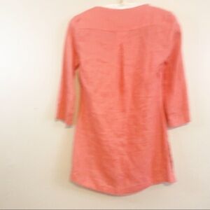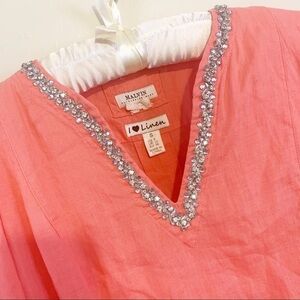 MALVIN HAMBURG GERMANY Womens Coral Linen Tunic Bling Neckline Lagenlook Size 6. Excellent Pre-owned condition. Minimal signs of wear. All measurements are approximate.