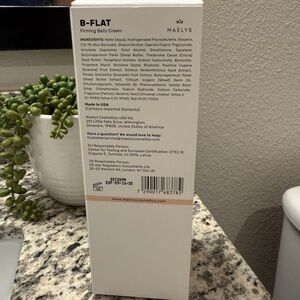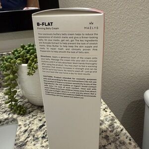 Enhance your skincare routine with the MAËLYS B-FLAT Firming Belly Cream. This cream, in vibrant pink and orange packaging, helps improve the appearance of cellulite and stretch marks.