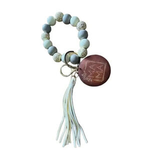 Wooden bead bracelet keychain