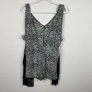 MAMIE RUTH Women S Black White Animal Print Fringe Romper Shorts Summer Outfit