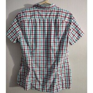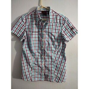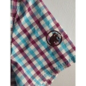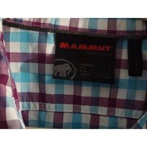 MAMMUT Womens Size Large Aada Hiking Shirt Short Sleeve Purple Blue Plaid. Measures approximately 20 inches armpit to armpit and 27 inches long. Thanks for looking.
