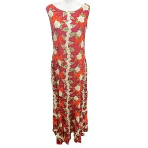 MAMO HOWELL Vintage Hawaiian Muumuu Red Tropical Long Maxi Sun Dress Size M
