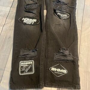 MAN Boohoo Man Distressed Patch Black Denim Jeans Size 32 NEW / NWOT