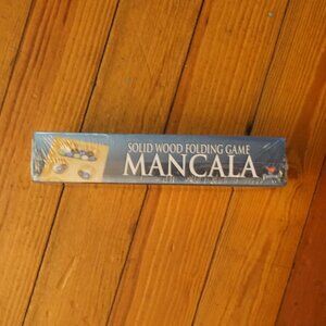 New in cellophane, never opened MANCALA solid wood folding game.