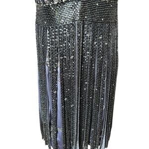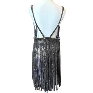 MANDALAY Sleeveless Metallic Embellished Fringe Mini Dress-Size 12