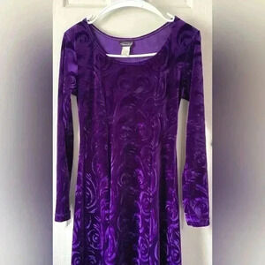 MANDEE PURPLE VELVET LONG SLEEVE WIDE NECK LONG MAXI DRESS SIZE SMALL