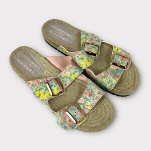 MANEBI X LoveShackFancy Nordic Floral Leather Espadrille Slide Sandals 41/US 11