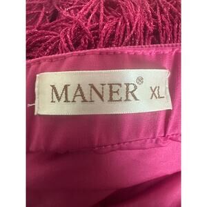 MANER Hot Pink Fringe Mini Skirt Stretchy Bodycon Tassel Trim Women’s XL Western