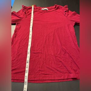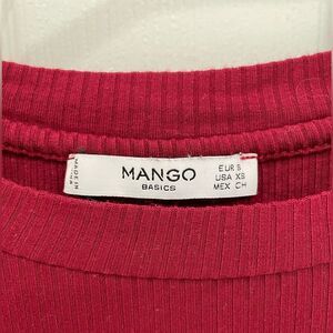 MANGO Basics Red Pink Ruffle Detail Ribbed Long Sleeve Top Women’s Size XS