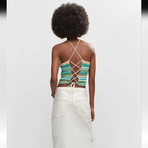 In a cropped shape, this top Mango is a wardrobe classic with neat striping. Topped with a halterneck and a sleeveless design, it is made from a soft cotton blend and will get you ready for the sun with its summery vibe.