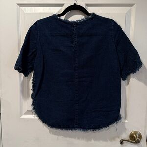MANGO Blue Denim Raw Edge Short Sleeve Top