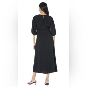 MANGO Bombay Dress Black Puff Sleeve Midi Dress NWT