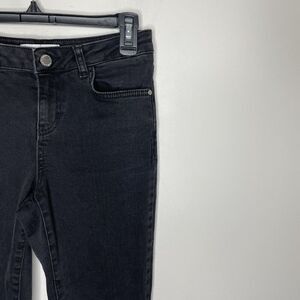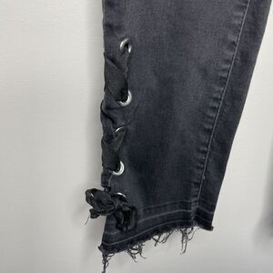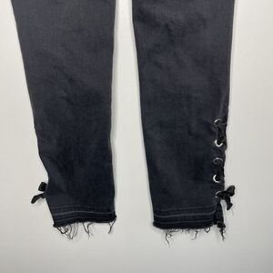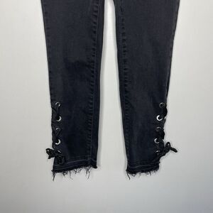 MANGO Denim Jeans Women 2 Black Corset-Tie Raw Hem Detail Slim MNG