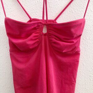 Flowy fabric. Fitted design. Corset style. Crew neck. Double thin straps. Back neckline. Popper closing on the back. Festival Season. In good preowned condition with no noted flaws. Brand’s size chart in the last photo.