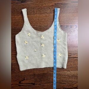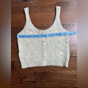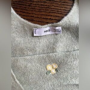 MANGO Embroidered Flower Cropped Top pastel green Sz. XS NWOT