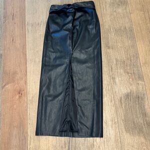 MANGO Faux Leather Maxi skirt Sz XS Black Twist Knot Slit Front