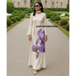 Ethereal elegance meets effortless sophistication in this MANGO Ecru Floral Maxi Dress โ the perfect harmony of minimalist design and bold floral artistry. With its flowy silhouette and striking purple flower print, this dress exudes quiet luxury and timeless grace.