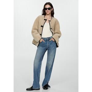 MANGO Fur-effect Coat With Appliques - S Ecru