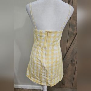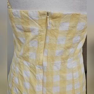 MANGO Gingham Check Bow Mini Thin Strap Dress In Butter Yellow/white. Size SM