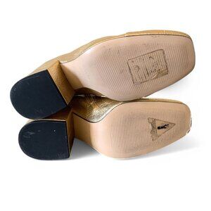 MANGO Gold Metallic Leather Ankle Boots With Block Heel & Side Zip Closure Sz 7