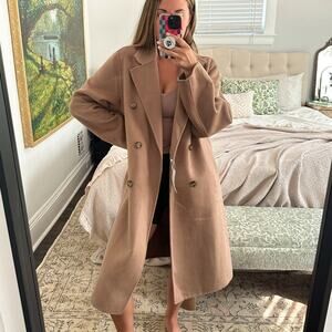 MANGO Handmade Double Breasted Wool Long Camel Coat Medium