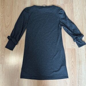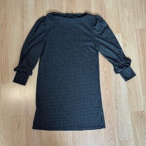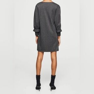 MANGO Houndstooth Mottled Gray Ruffle Academia Grunge Preppy Dress Size XS VGUC