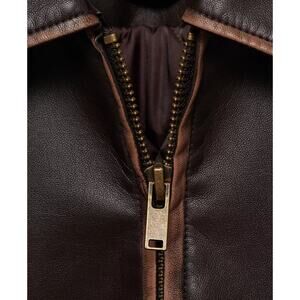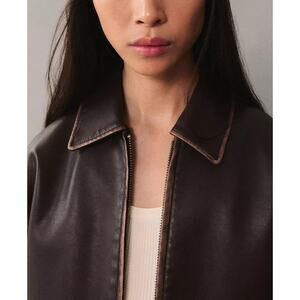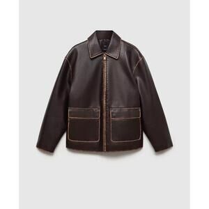 MANGO Leathereffect Jacket With Contrast Stitching - S Brown