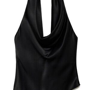 MANGO Luc Draped Satin Halter Top | Size L NWT-ish