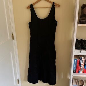 MANGO MNG Black linen midi dress with back cut out / back tie