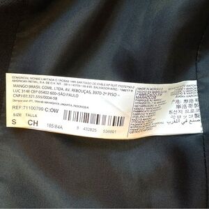 Make a statement with this striking MANGO MNG Collection black and white open blazer. The bold pattern and sleek black lapel add a modern edge to any outfit, making it perfect for both professional and casual occasions.
