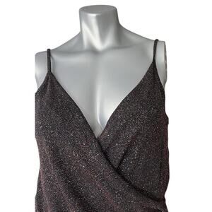MANGO MNG Glitter Ruched Cami Red Faux Wrap Top Size Large Glam Y2k NEW NYE