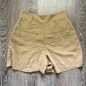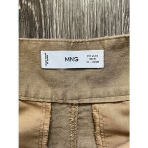 MANGO MNG High Waist Linen Blend Tailored Shorts Tan Summer Resort Size M