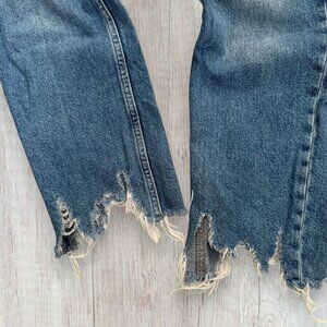 MANGO MNG Slouchy Mom High Waist Cropped Frayed Button Fly Jeans Denim Size 4