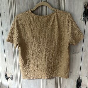 MANGO Womens XXL Stylish tan button-up short sleeved shirt with a textured design. Perfect for casual wear.