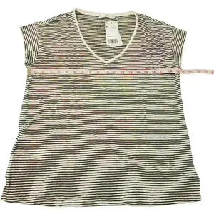 MANGO MNG WOMEN'S STRIPED LINEN V-NECK SHORT SLEEVE TEE T-SHIRT NWT NEW